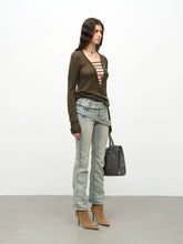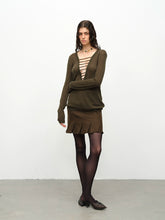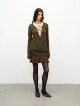 Product Name: Wool Handmade Drawstring Knit Pullover Two-tone Sweater