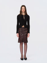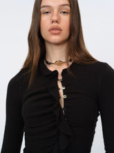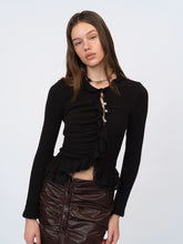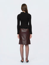 A high-stretch knit top spun with wool for a soft, resilient hand and smooth recovery. Lace-trim paneling and a clean, tailored shoulder refine the lines, while the fitted body highlights the waist. Easy to dress up with skirts or tailoring, or pair with denim for everyday polish. Fully finished for comfort and a sleek, minimal drape.