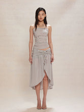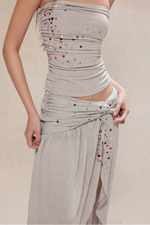 Rhinestone Strap Knit Tube Top & Skirt Set