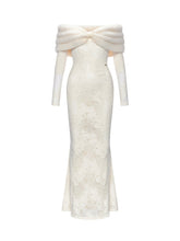 Cynthia Off-Shoulder Fur Collar Long Sleeve Lace Dress