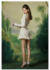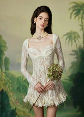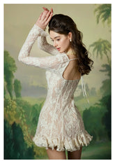 Laura Lace Waist-Cinched Long Sleeve Dress
