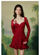 Product Name: Laura Lace Waist-Cinched Long Sleeve Dress