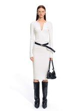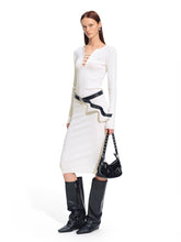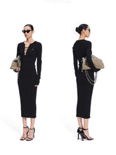 Made from a soft wool-blend stretch knit, this long-sleeve dress features a deep V neckline and slim silhouette for a sculpted, feminine fit. The ribbed 2×1 knit structure enhances elasticity and comfort, hugging the body while maintaining shape. Its mid-weight texture provides gentle warmth and flexibility, ideal for both casual and elegant occasions.