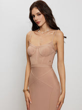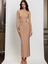 Designed with body structure in mind, this slim-fit panel dress enhances proportions for an elegant and refined look. Features adjustable shoulder straps for practicality and comfort. Built-in breathable padding ensures comfort and support.