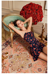 This original stone-pomegranate floral printed dress features a luxurious silk feel. The hidden back zipper makes it easy to slip on, while the front fishbone structure flatters the waistline. The A-line silhouette adds a cute and elegant charm.