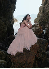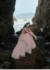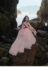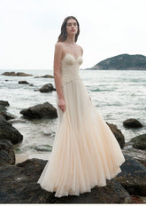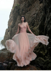 This exquisite gown combines delicate lace and a boned corset to accentuate the soft curves of femininity while offering excellent shaping. The layered tulle skirt creates a romantic and dreamy atmosphere, exuding elegance and sophistication in every detail. The full-skirt design enhances mobility with grace, perfect for any special occasion.