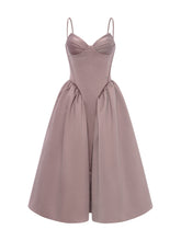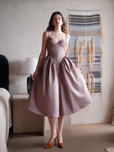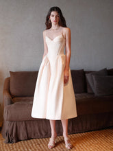 Beautiful bow design at the chest for an elegant look.The dress is structured with boning to fit perfectly around the waist.A-line midi skirt for a romantic and timeless style.Includes a built-in mesh skirt for added volume.