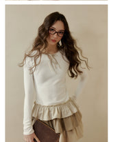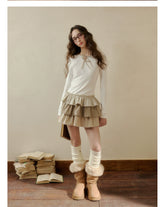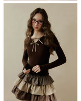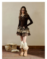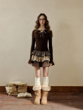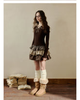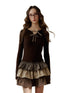 Fabric Composition: Brown Top: 62% Acrylic, 20% Rayon, 13% Nylon / White Top: 82% Acrylic, 10% Nylon, 8% Rayon; Brown Skirt: 100% Polyester / Beige Skirt: 100% Polyester