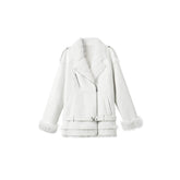 Crafted from matte soft-touch eco-leather, this jacket features a plush faux fox-fur collar and full interior fleece lining for warmth and comfort.