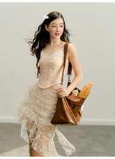 GROUP OF UNIVERSE,Pink Lace Trim Maxi Skirts