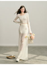 White Rose Hand-Crocheted Mohair Knit Skirt