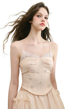 GROUP OF UNIVERSE,Pink Lace Trim Spaghetti Strap Top