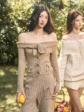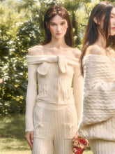 Velvet Bunny Wool Cloud Off-Shoulder Knit Cardigan & Pants Set