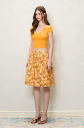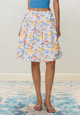 This original printed midi skirt features a fitted waist and a flared hem that beautifully accentuates your legs. The garden-inspired floral print has a clear, three-dimensional quality for rich visual impact. Side pockets add practical functionality.