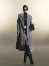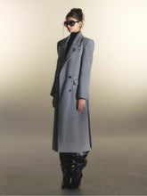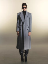 This long wool coat features an oversized silhouette balanced with a sculpted waist tie, enhancing the X-shaped profile while maintaining a relaxed drape. The broad shoulder design reinforces structure, elevating the traditional wool coat with a refined, modern edge. Its clean panel lines and tailored finishing highlight craftsmanship, while the premium wool-blend fabric provides both warmth and texture. A versatile outerwear piece designed for understated sophistication during the cooler seasons.