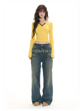 Designed with a laid-back low-rise fit, these wide-leg jeans feature distressed wash and retro fading. The loose silhouette enhances comfort and complements a street-style edge. Ideal for effortless casual looks.