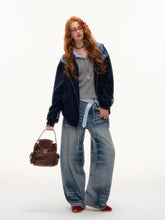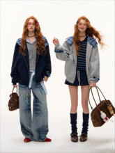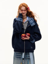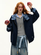 This vintage-inspired hoodie cardigan is crafted from layered air cotton fabric that feels soft, breathable, and cool against the skin while maintaining durability and shape after washing. The oversized silhouette easily fits different body shapes, creating a relaxed street style that is both flattering and versatile. Featuring plaid splicing details with embroidery accents, angled pockets, and ribbed cuffs, this zip-up hoodie combines comfort and practicality with a retro aesthetic, making it a stylish everyday essential.