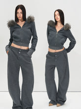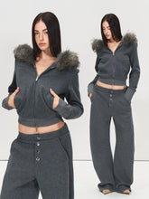 Detachable Fur Collar Hoodie & Sweatpants Set