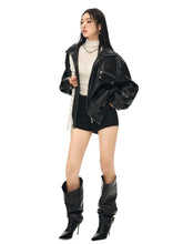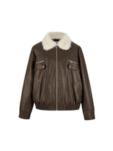 A bold and stylish vintage-inspired moto jacket featuring a wide silhouette and a distinctive fur collar. The jacket is made of premium materials, providing both a structured look and a soft feel. Ideal for creating a standout outfit with a blend of retro and modern elements.