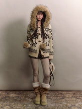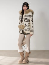 Loose-fit outerwear blending vintage Fair Isle patterns with a detachable fur collar and classic toggle closures. Cozy yet refined, with delicate detailing and a warm winter aesthetic inspired by traditional collegiate style.