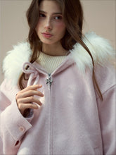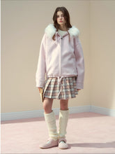 A wool-blend shell contrasts with a plush faux-fur collar for a cozy, winter-ready finish. The detachable inner plaid hood in 100% cotton adds breathability and styling versatility. Hand-crocheted bow and butterfly chain closure deliver refined detailing, while side pockets and a relaxed silhouette keep it practical for daily wear. Polished metallic logo accents complete the look for city to weekend layering.
