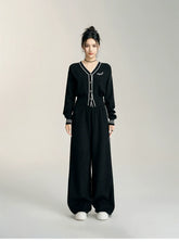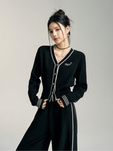 MacyMccoy, Black & Off-white V-neck Knitted Cardigan Set