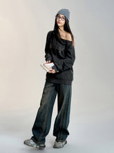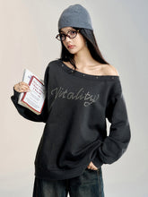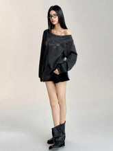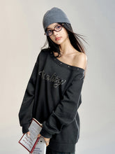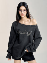 Gray Off-shoulder Studded Oversized Sweatshirt