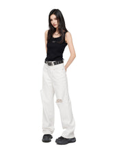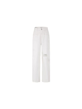 These high-waisted ripped denim pants feature a flattering slim fit and frayed edges for a trendy and casual look. The stylish design highlights the waistline, with a comfortable fit perfect for everyday wear.