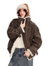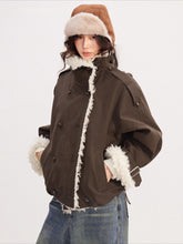 This stylish short jacket features a modern boxy fit with sheepskin splicing for a warm, textured look. The quilted design offers a cozy feel while maintaining a sleek, contemporary silhouette. The stand collar and zip closure add functional flair, perfect for layering in chilly weather. Ideal for casual days or a chic street-style look, this jacket offers warmth and comfort with its high-quality materials.