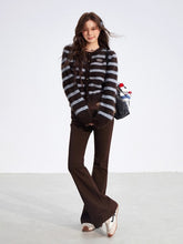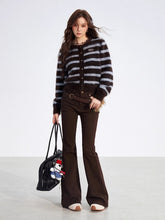 A cozy short knit sweater made from soft mohair-blend yarn with a vintage-inspired striped design. The material feels gentle against the skin while providing warmth and comfort for cool-weather layering. Featuring a relaxed round neckline and slightly cropped fit, it pairs easily with high-waisted pants or skirts for a laid-back yet polished everyday look.