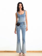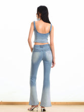 A stylish pair of mid-waist washed flared pants featuring a gradient design. These pants are perfect for casual and semi-formal settings, offering both comfort and a flattering fit with a chic flare at the bottom.