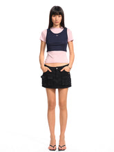 Product Name: Asymmetrical Low - Rise Straight - Cut Denim Mini Skirt