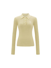 Style: Polo collar, simple and elegant, flattering face shape, comfortable to wear; slim waist fit, accentuating bust and waist proportions. Design Details: - 16-gauge fine knitting technique. - Full silk gloss wash treatment. - Complex details on collar and placket.
