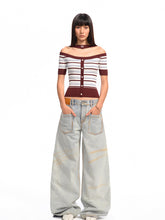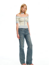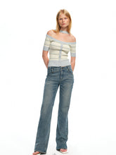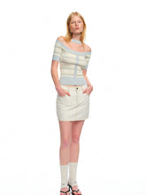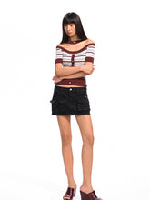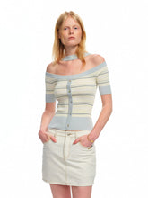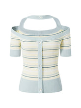 Product Name: One-Shoulder Halter Neck Color-Block Striped T-shirt