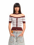 This T - shirt features a specially - adjusted wide and narrow striped color - block design. High color fastness ensures that the colors do not bleed. It has a false placket design, embellished with shell buttons.