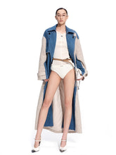 “Caracal Series” Washed Twill Patchwork Wool Denim Trench Coat