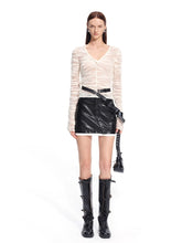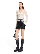 Crafted from 100% premium wool, this sweater uses natural curly fibers that lock in air to form an insulating layer, providing warmth without bulk. The fabric’s natural elasticity, moisture absorption, and antibacterial qualities keep the skin dry and comfortable in any environment. A folded ribbed neckline enhances depth and structure, while the front-split V-neck visually elongates the neck for a graceful finish. The soft single-face boucle texture delivers a subtle dimensional snowflake effect, balancing warmth with sophistication.