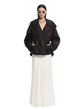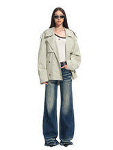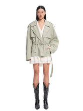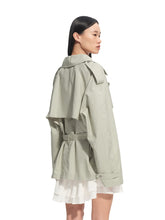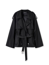 This mid-length trench coat combines cotton and Tencel in a twill weave for a crisp yet breathable structure. The raglan sleeve construction enhances comfort, while the front and back storm flaps visually slim the waistline. Featuring sculpted epaulettes, adjustable cuff tabs, and a belted waist with a metal four-hole buckle engraved with the NAWS logo, it balances refinement with modern functionality. Thoughtful tailoring and precise details create a versatile outerwear piece that elevates everyday wear.