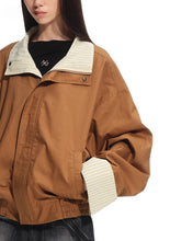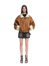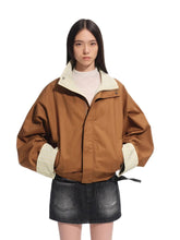 A short, structured jacket crafted from a blend of cotton and Tencel twill, designed with contrasting panels for a modern edge. The relaxed dropped-shoulder cut enhances comfort and creates a casual silhouette, while the gathered hemline adds structure without excess bulk. Featuring wide cuffs with fold-over design, it combines lightness with definition. Perfect for layering, this versatile piece highlights effortless style with elevated detail.