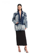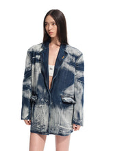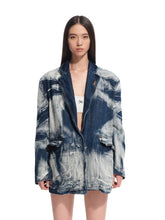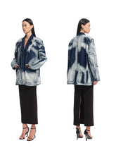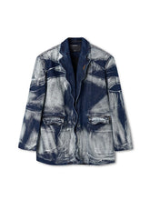 Placket and pocket flaps crafted with aluminum wire for irregular styling and unique structure. Oversized loose silhouette provides comfort and compatibility. Finished with lightning-style whisker wash effects, creating bold layered textures and modern distressed appeal.