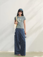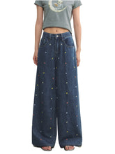 High-quality denim fabric is stiff and abrasion-resistant, breathable and easy to care for, suitable for daily wear. High-waisted and straight-leg style elongates leg shape, accommodating various leg types. Colorful embroidered flowers are eye-catching, easily becoming the street focus.