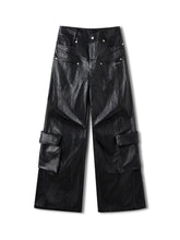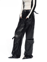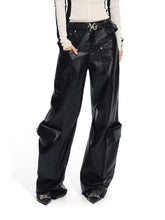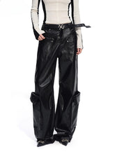 Punk-Style Eco Textured Faux Leather Wide-Leg Pants