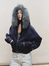 Batwing Hooded Fur-Collar Jacket
