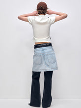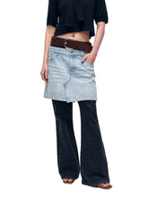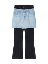 Color Block PatchworkFake Two-Piece Denim Flared Skirt Pants