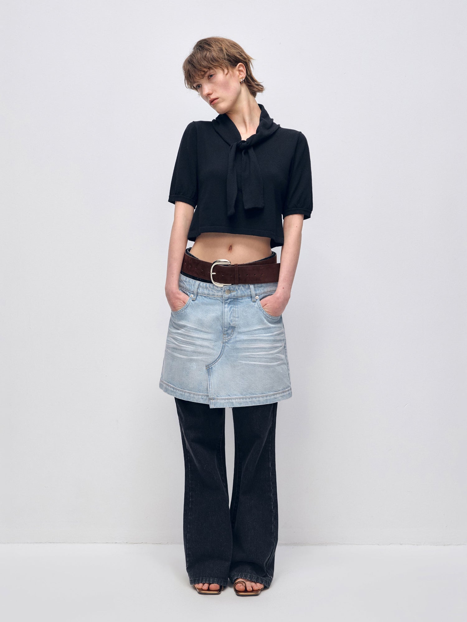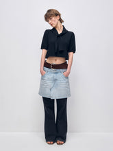 Product Name: Color Block PatchworkFake Two-Piece Denim Flared Skirt Pants