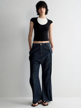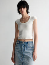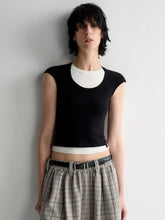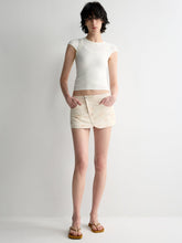 Deep U-Neck Ruffled Short Sleeve T-shirt