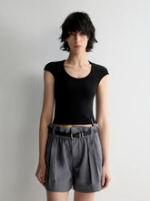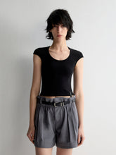 Product Name: Deep U-Neck Ruffled Short Sleeve T-shirt
