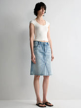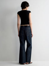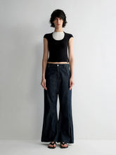 This T - shirt features a deep U - neck design and delicate ruffled sleeves, with a loose fit for a comfortable and stylish look.