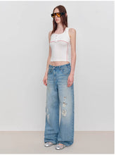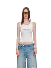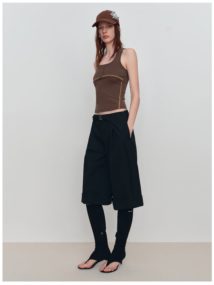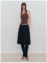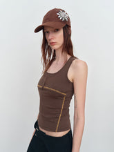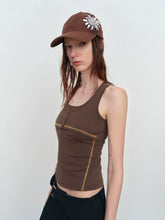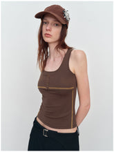 U - neck slim - fit vest; Sporty contrast - color stitching design to show waist proportion