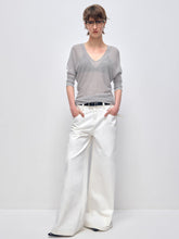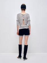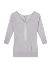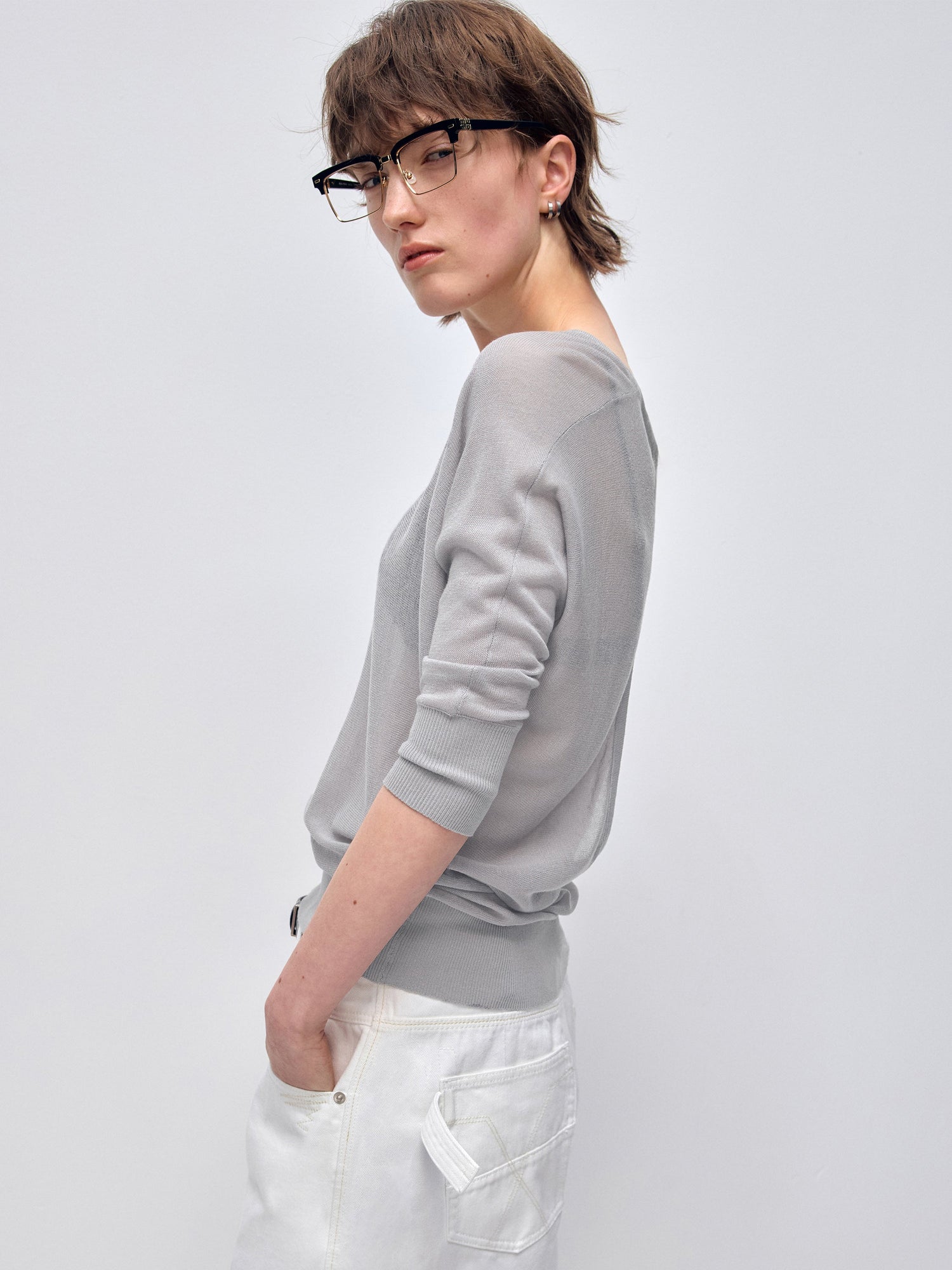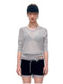 Gray Slightly Sheer V-Neck Long Sleeve Base Layer